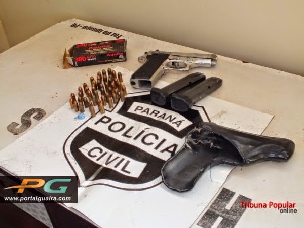 Na casa do pastor, foi localizada uma pistola calibre 380 com dois carregadores e 45 munições intactas do mesmo calibre, além de uma bucha com substância análoga à cocaína.